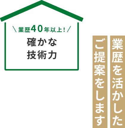 業歴が40年以上で、『建築板金基幹技能士』『建築板金1級技能士』の資格を保有している職人が施工を担当。 これまでの知識と経験を活かし、それぞれの現場に合った最適なご提案をいたします。 他社で断られてしまったというご依頼もぜひ一度ご相談ください。
